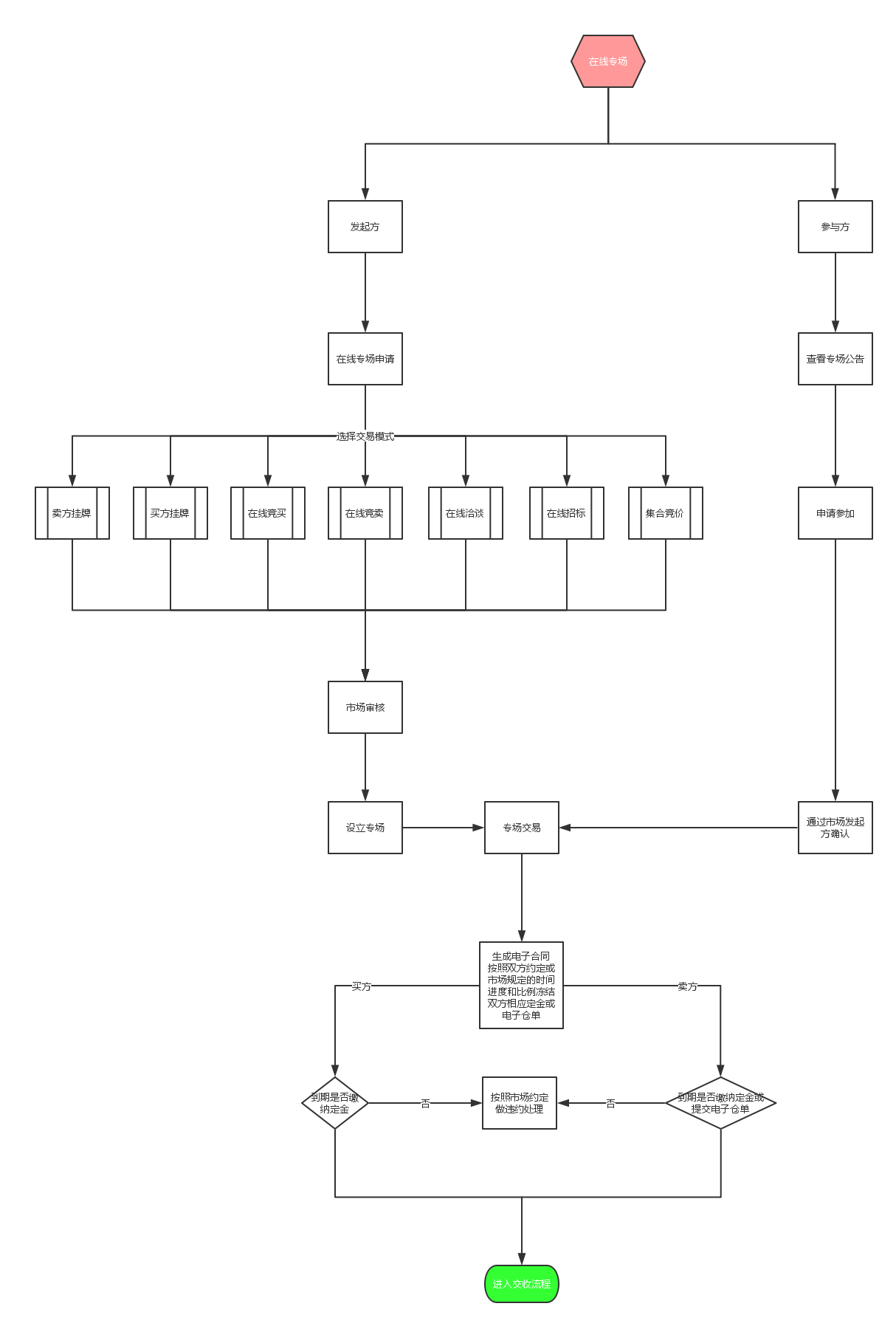 在線專場(chǎng)交易模式是本市場(chǎng)為了更好地服務(wù)于市場(chǎng)和交易商,根據(jù)市場(chǎng)發(fā)展的需要、交易商的需求等情況,專門(mén)為某交易商或某交易商品或某地區(qū)等開(kāi)設(shè)單交易模式或多交易模式的專場(chǎng),以適應(yīng)和滿足市場(chǎng)的特殊需求