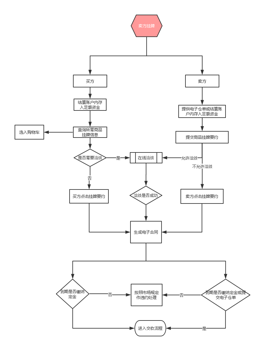 賣(mài)方掛牌是指在本市場(chǎng)內(nèi)賣(mài)方將其自有或未來(lái)?yè)碛械纳唐吩敿?xì)情況錄入交易系統(tǒng),確認(rèn)后發(fā)布掛牌要約,買(mǎi)方通過(guò)交易系統(tǒng)查詢相關(guān)掛牌要約內(nèi)容,并摘牌成交簽訂電子交易合同的一種交易模式。
