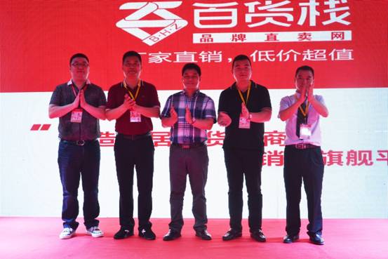 在現場近百位企業家的見證下,由百貨棧創始人,CEO陳啟令;浙江龍士達家居用品有限公司總經理張雷、浙江華亞杯業總經理程建華、浙江永康誠成廚具(百強品牌)總經理王秩文、義務雙贏廣告總經理任文俊五位嘉賓共同按動啟動按鈕,宣布百貨棧品牌直賣網上線試運行!
