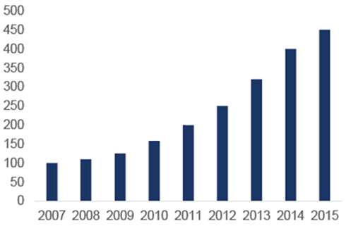 2007-2015年中國智能物流輸送系統(tǒng)市場規(guī)模走勢圖