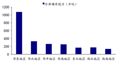 中國各區(qū)冷庫儲存能力(萬噸)