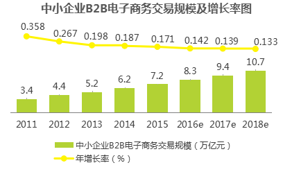 其中艾瑞統計,2015年中國中小企業B2B電子商務市場交易規模為7.2萬億元,同比增長17.1%;規模以上B2B市場交易規模為4.6萬億元,同比增19.5%。數據顯示,我國中小企業B2B電子商務市場交易規模正不斷增大。