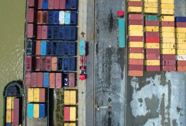 裝載首批跨境電商 B2B 出口貨物的貨車在富陽口岸國際物流園區(qū)內接受海關查驗