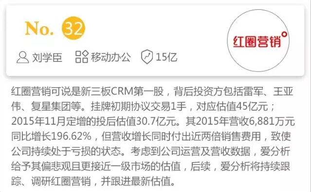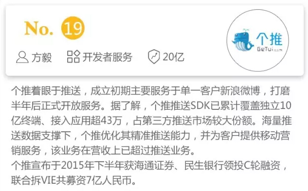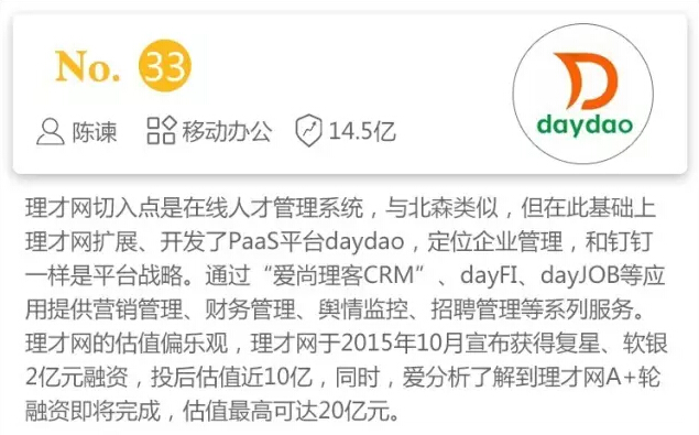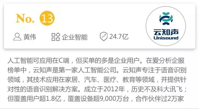 愛分析是一家專注于創新企業研究和評價的互聯網投研平臺。中國企業級服務估值排行榜,是繼互聯網金融、移動醫療之后,愛分析第三份榜單產品。我們將持續提供各個創新領域榜單和洞察。關注微信號 ifenxicom,及時獲取第一手原創資訊!
