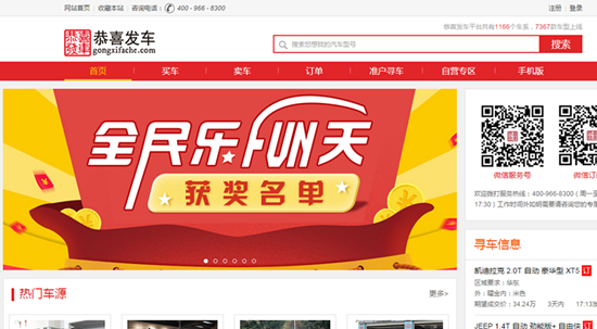 公開資料顯示,恭喜發(fā)車成立于2015年8月,是一家為中小型車商提供新車在線交易、金融和物流等服務(wù)解決方案的B2B平臺,隸屬于上海發(fā)車信息技術(shù)有限公司。目前網(wǎng)站主要分為買車、買車、準(zhǔn)戶尋車等版塊,首頁顯示以車源介紹為主,首頁側(cè)方單列了尋車信息欄。平臺介紹稱,其已擁有1166個車系,包含7367款車型。
