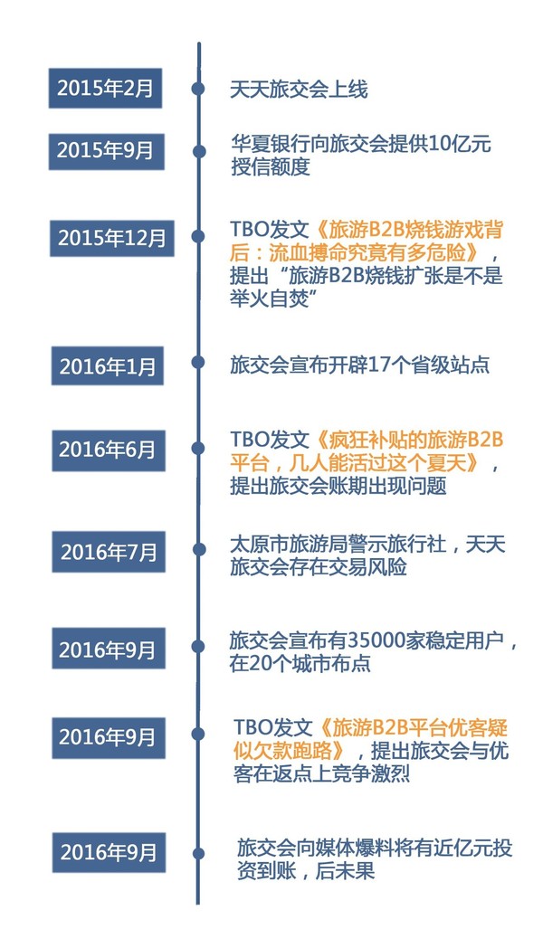 2016年5月,TBO對天天旅交會拖延供應商賬款進行了首次報道。當時有業內人士稱,其接到天津旅游品質保障協會的通知,天天旅交會平臺付款賬期出現問題,而供應商收款存在嚴重隱患。