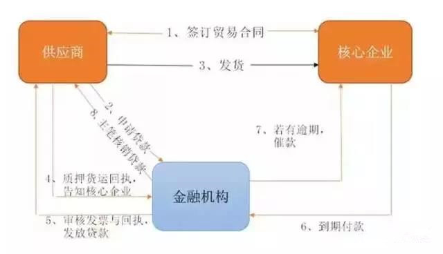 一是,銀行給渠道商融資,預付采購款項給核心企業,核心企業發貨給銀行指定的倉儲監管企業,然后倉儲監管企業按照銀行指令逐步放貨給借款的渠道商,此即為所謂的未來貨權融資或者先款后貨融資;