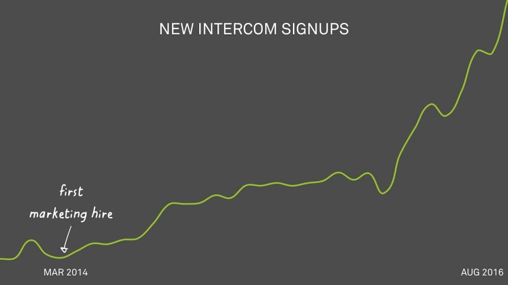 事實上,好的營銷配上好的產品,才能收獲一加一大于二的效果。當然,我是非常認可營銷的功效的,它能放大產品的優勢。如果你還懷疑這一點,對照下圖:在2014年3月Intercom被大力推出市場之后,它在兩年多內注冊用戶增長了十二多倍。