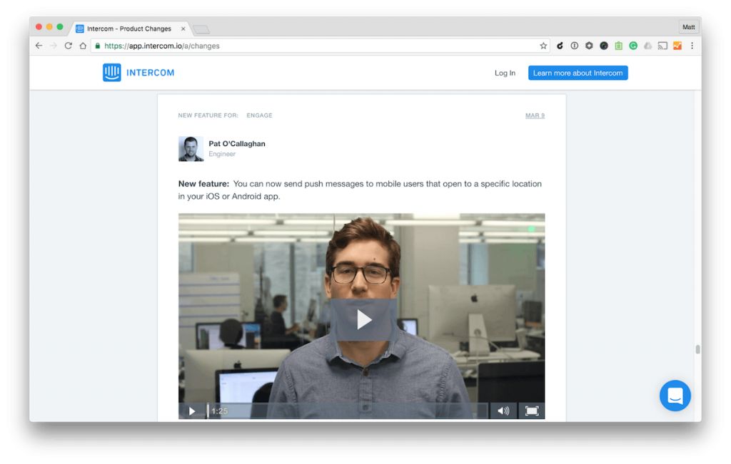 ?產品更改頁:要公開產品更改頁的入口,并且產品更改頁要能在Intercom上流暢地運行,這可是新產品、新特點及重大改進體現的渠道。