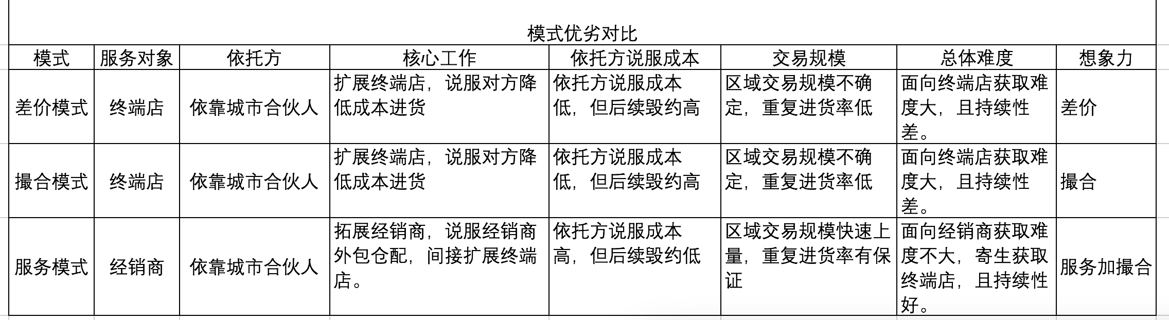 而這三種模式的進(jìn)一步區(qū)別和運(yùn)營(yíng)難度在下圖中,您可以看的更清楚。