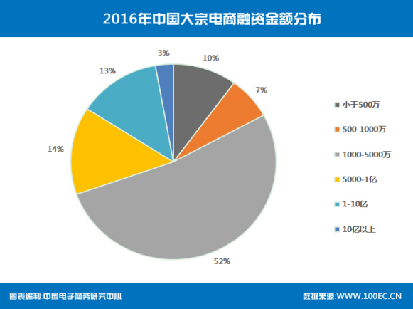 據中國電子商務研究中心(100EC.CN)監測數據顯示,2016年中國大宗電商市場共發生了78起投融資事件,金額總計52.66億元。
