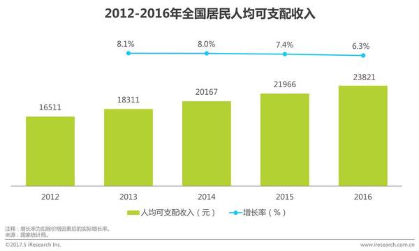 據(jù)國家統(tǒng)計局數(shù)據(jù)顯示,2012-2016年國內(nèi)居民人均可支配收入從16511元增長至23821元,年增長率穩(wěn)定在6%以上。隨著人們生活水平的提高,追求高品質(zhì)的生活理念深入人心。