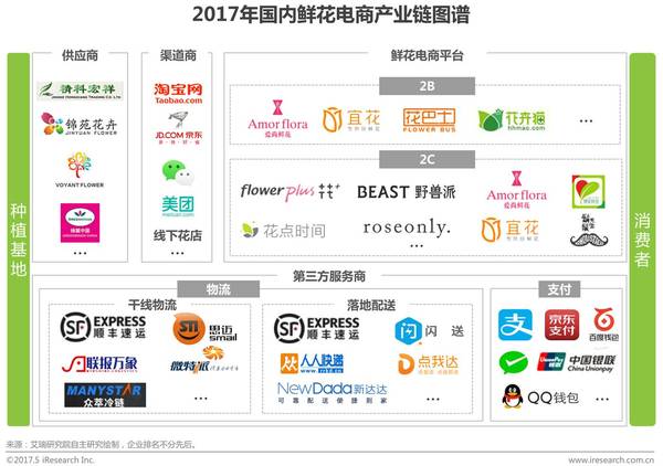 2017年國內(nèi)鮮花電商產(chǎn)業(yè)鏈圖譜