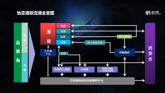周國輝表示,怡亞通新流通商業模式的核心是“供應鏈+互聯網”。怡亞通要做的,就是搭建一個通用標準的互聯網平臺鏈接每一個商店,為大賣場、小區超市等終端門店提供供應鏈金融、互聯網化、大數據等全鏈條的服務支持。