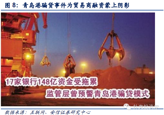 貿(mào)易商為實(shí)現(xiàn)差異競爭,開始嘗試為上下游客戶提供金融服務(wù),探索解決行業(yè)資金周轉(zhuǎn)痛點(diǎn),但青島港騙貸事件表明,中小貿(mào)易商的實(shí)力無法解決行業(yè)資金周轉(zhuǎn)痛點(diǎn),供應(yīng)鏈金融亟需"正規(guī)軍"介入。盡管部分中小貿(mào)易商已經(jīng)開始利用大宗商品庫存進(jìn)行融資,獲取銀行低息資金,進(jìn)而為上下游企業(yè)提供初級(jí)商業(yè)保理、賒銷、融資租賃等業(yè)務(wù)。但青島港騙貸事件導(dǎo)致國內(nèi)銀行對(duì)大宗商品融資規(guī)模大幅減少,中小貿(mào)易商開展供應(yīng)鏈金融的資金來源捉襟見肘,難以為繼。