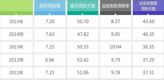 2011-2015年固安捷庫存周轉和應收賬款周轉情況,數據來源:財報