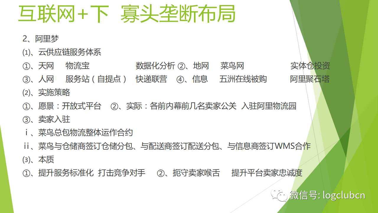 阿里實際也是在做一個全渠道,阿里實際上是在天地人的概念,阿里的天網就是阿里的系統(阿里的物流寶和阿里的速度分析),實體就是菜鳥,實體倉,覆蓋網絡,包括信息物流,人網就是人的融合。