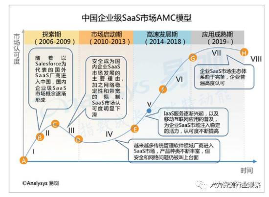 易觀智庫在2016年的中國企業(yè)級服務(wù)市場盤點中顯示,移動互聯(lián)網(wǎng)應(yīng)用的普及,為企業(yè)Saas市場注入穩(wěn)定的活力,企業(yè)認可度也在不斷提高。到了2019年,企業(yè)Saas市場會進入成熟期,各路玩家圈地完成,生態(tài)體系會趨于完善。