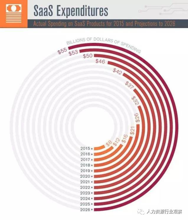 據(jù)BSCG研究預(yù)測,美國SaaS產(chǎn)業(yè)的支出正以驚人的速度增加。2015年,市場上對SaaS產(chǎn)品的支出達到80億美元,2016年增長到120億美元。研究分析師預(yù)測,在2017年將跳到160億美元,并將逐年持續(xù)增長。預(yù)計至2026年達到550億美元。