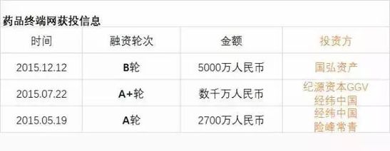 在業務高速增長的同時,藥品終端網也獲得了資本的青睞。其在2015年一年就完成了三筆融資。