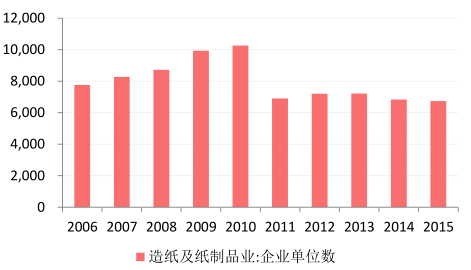 目前我國漿紙市體量在1.4萬億以上,原紙市場在8000億以上,包裝用紙在2500億左右。除了包裝用紙外,文化用紙也占據造紙行業重要地位,2015年我國文化用紙生產量占總產量占比23.48%。2015年我國造紙行業的企業單位數有6737家,全國范圍內排名前10的造紙企業產能占全國總產能的30%左右,前100位的紙企產能占全國總產能的60%左右。
