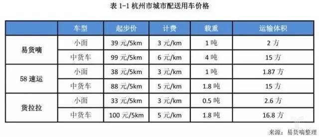 當前,隨著行業(yè)的進一步規(guī)范,同城貨運在定價方面開始逐步標準化。以易貨嘀、58速運、貨拉拉在杭州的定價為例,物流平臺均已按照車型、載重及運輸體積,制定了標準、透明的運價,有效杜絕了坐地起價的擾亂市場秩序的行為。