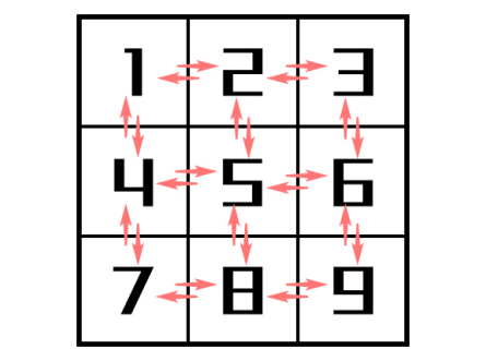 舉個簡單的例子,假設(shè)這個市場為一個九宮格,每家企業(yè)能且只能與周邊直接接觸的小格子進行單線聯(lián)系以此來模仿整個市場資源信息不夠互通的現(xiàn)狀,那么就會出現(xiàn)這樣一個問題: