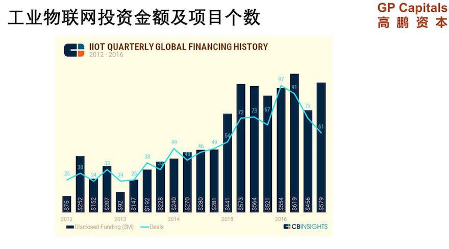 從2012年GE提出工業互聯網開始,過去五年中工業互聯網的投資金額和個數逐年增多。