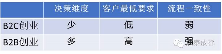 兩相比較,B端客戶決策維度多,達成交易的最低要求高,但流程標準化,輸出可靠性高;而C端客戶的決策維度少,達成交易的最低要求低,但流程不標準,輸出可靠性低。這是B2B和B2C用戶屬性的核心區別。