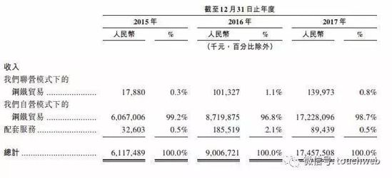 招股書顯示,找鋼網2015年、2016年、2017年營收分別為61.17億元、90億元、174.57億元。