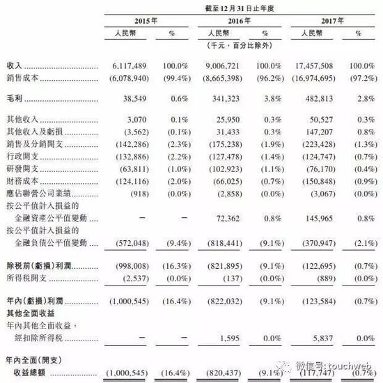 找鋼網毛利率非常低,找鋼網2015年、2016年、2017年毛利分別為3854.9萬元、3.41億元、4.828億元,毛利率分別為0.6%、3.8%、2.8%。