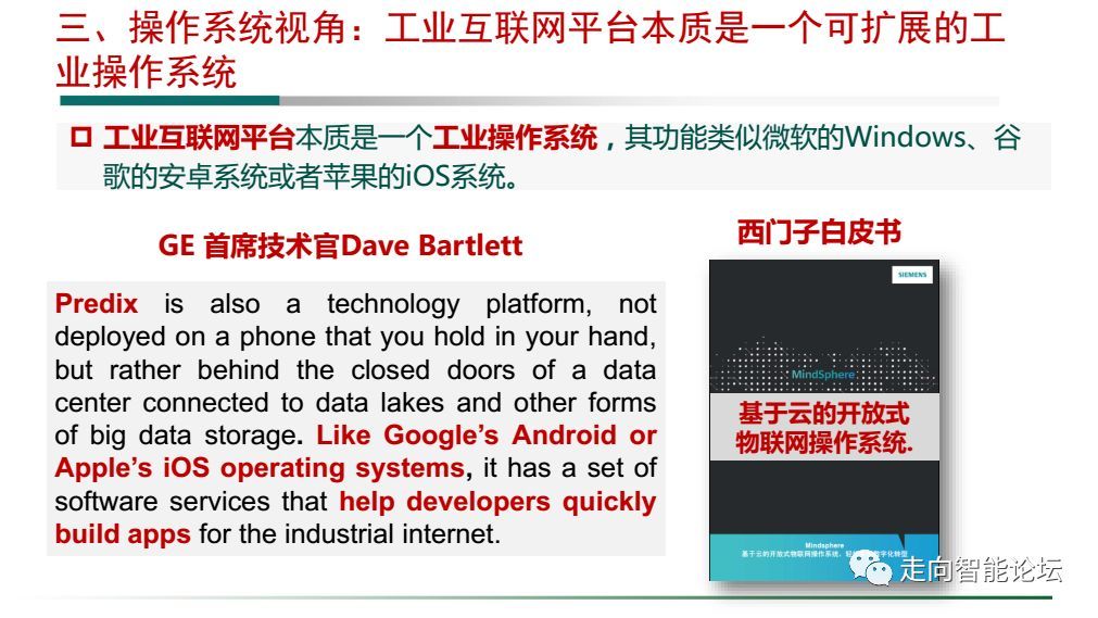 近期在江蘇經(jīng)信委推進(jìn)工業(yè)互聯(lián)網(wǎng)平臺工作會議上,工信部信軟司安筱鵬副司長結(jié)合《關(guān)于深化“互聯(lián)網(wǎng)+先進(jìn)制造業(yè)” 發(fā)展工業(yè)互聯(lián)網(wǎng)的指導(dǎo)意見》解讀,從四個方面介紹了對工業(yè)互聯(lián)網(wǎng)平臺的一些認(rèn)識和理解:工業(yè)云的視角、解決方案視角、操作系統(tǒng)視角、產(chǎn)業(yè)生態(tài)視角,以及下步工作的初步考慮。以下為演講PPT圖片,供大家交流學(xué)習(xí):