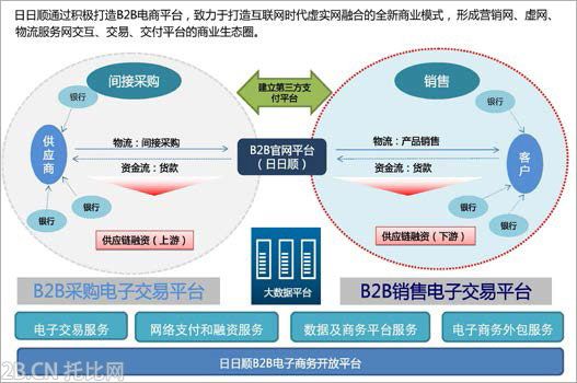 B2B與B2C融合,關鍵在于彼此核心運營能力的外延。B2B強大的采購能力與 低成本的運作方式,可以為B2C企業提高采購效率、降低采購成本。B2C龐大的消 費者資源,可以使得B2B企業更加了解最終用戶的需求,從產業鏈上向終端消費 者進一步靠攏。