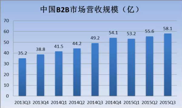 中國的B2B行業始終是整個電子商務市場中的主導部分,在進入2015年后,B2B電商的發展開始迎來一個新時期,僅半年就有近70家B2B企業獲得融資,覆蓋農業、運輸、化工等多個領域,預示著我國B2B行業的發展開始打破僵局,進入了一個新的發展時期,成為投資機構和創業者眼中一個新的風口。