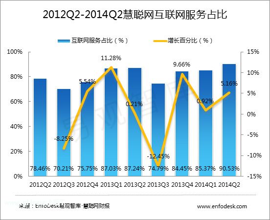 銷售收入增長得益于互聯網服務