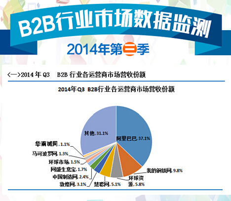 對于B2B的網站來說,無論其運營核心是綜合性的或是專業性的,都在積極探索創新性商業模式,不斷地調整尋求變革。像在國內比較知名的網站阿里巴巴、慧聰、環球資源、華南城網等綜合性的B2B網站,盈利核心還是為企業經營過程提供整體服務,并不斷強化自身特色的創新服務模式。以下是2014年第三季度B2B行業市場監控數據,可供參考: