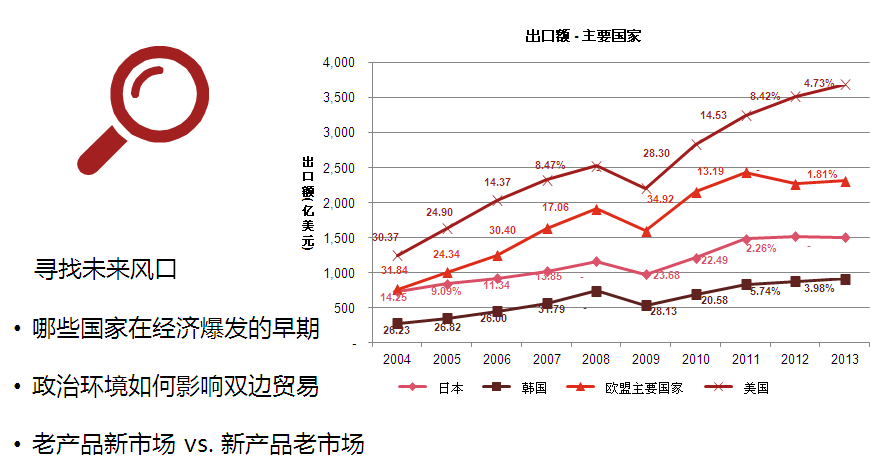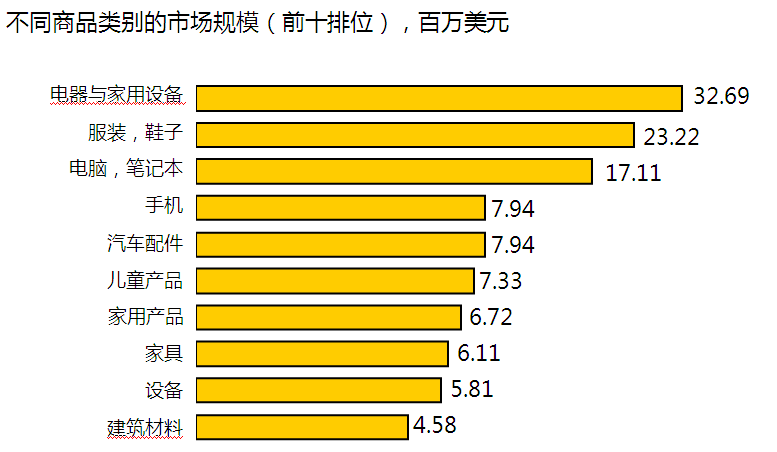 整個出口總額14萬億元,最大的兩塊市場是歐洲和美國,歐洲占了3.7萬億元,美國3.4萬億元左右。 整個出口在前年是8%左右,去年5%左右,其中通過電子商務實現的4萬億元增速約是30%左右,其中出口零售這塊占10%左右,約為3000億人民幣的規模,這塊的增長超過100%。