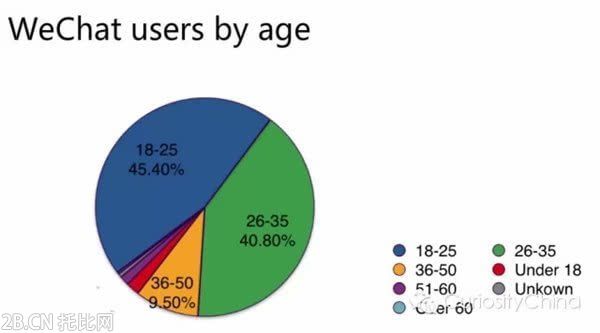 微信用戶普遍年輕,平均年齡在26歲。