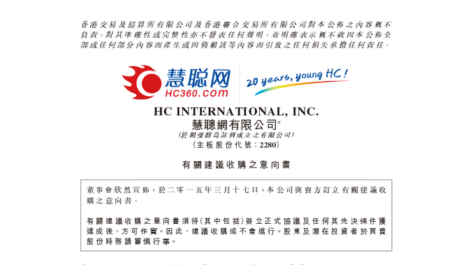 3月17日晚間消息,慧聰網(wǎng)(08292.HK)發(fā)表公告稱,已與中關(guān)村在線實(shí)際控制方達(dá)成收購意向,以約15億人民幣收購對方全部股權(quán)。在15億的收購價(jià)中,慧聰網(wǎng)將現(xiàn)金交付30%,其余70%將來自增發(fā)股份。