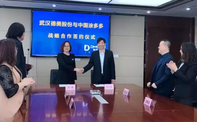 托比網4月25日訊,近日,涂多多CEO劉齋走訪了武漢德美新材料股份有限公司(以下簡稱:德美股份),在走訪期間雙方就平臺采購、營銷推廣等多個方向達成共識,并成功簽署了戰略合作協議。