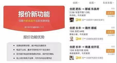 前些日子,馮師傅常常用來接單的配貨平臺運滿滿,在浙江金華、安徽合肥等地區實行了“報價”新功能的試點。
