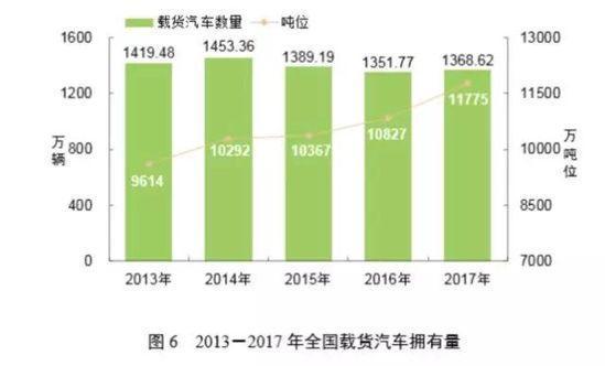 這一說法,從交通運輸部公布的數據中得到印證。2017年全國載貨汽車總量雖然增幅不大,但總噸位大幅增加,說明越來越多的司機用重卡替換了原來的“小卡車”。