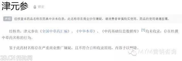 同樣年入數百萬的還有一款叫做”津元參“的產品,該產品以《本草綱目》記載的名義,甚至都進入了百度百科詞條。后才被舉報。