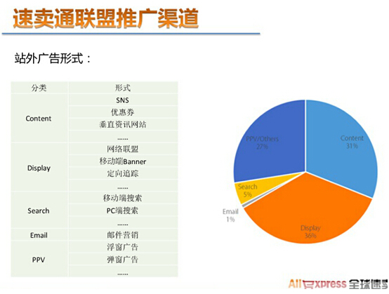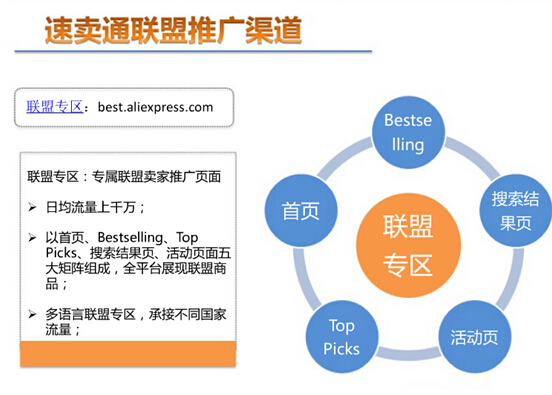 速賣通聯盟營銷是其官方推出的一種“按效果付費”的推廣模式,它是國內最大的海外網絡聯盟體系之一。加入的賣家可以得到海量海外網站曝光機會并享有聯盟專區定制化推廣流量。速賣通聯盟賣家只需為聯盟網站帶來的成交訂單支付聯盟傭金,不成交不付費,是性價比較高的推廣方式。
