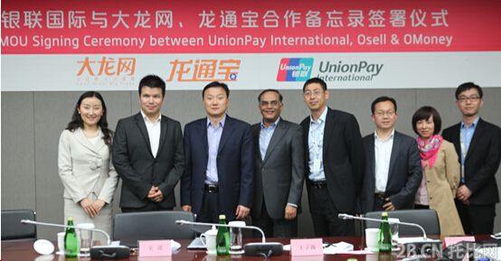 2015年4月2日,跨境電商大龍網(wǎng)攜旗下支付企業(yè)龍通寶與銀聯(lián)國際在上海浦東銀聯(lián)國際總部正式簽署戰(zhàn)略合作備忘錄。龍通寶總裁兼大龍網(wǎng)副總裁吳祺、大龍網(wǎng)副總裁鄭崢、銀聯(lián)國際首席業(yè)務發(fā)展官王立新等出席簽約儀式。三方一致就大龍網(wǎng)全面受理銀聯(lián)卡(卡號以62開頭)等事宜展開深度合作,實現(xiàn)境外持卡人在中國電商平臺的便利支付,同時推進雙方更多國際業(yè)務的開展,推動互惠共贏,為升級跨境結算做出貢獻。
