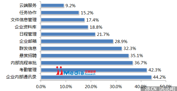 2015年中國中小企業微信企業號日常主要輔助功能分布