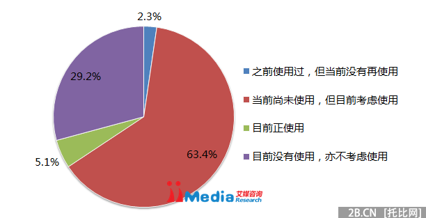 數據還顯示,5.1%的受訪中國中小企業目前正在使用微信企業號,而目前仍然沒有使用并不考慮使用微信企業號的占比達到29.2%。艾媒咨詢分析認為,目前微信企業號對于企業管理溝通有著明顯的促進作用,但目前滲透率仍然偏低。部分未使用微信企業號的企業已開始考慮開通微信企業號服務。