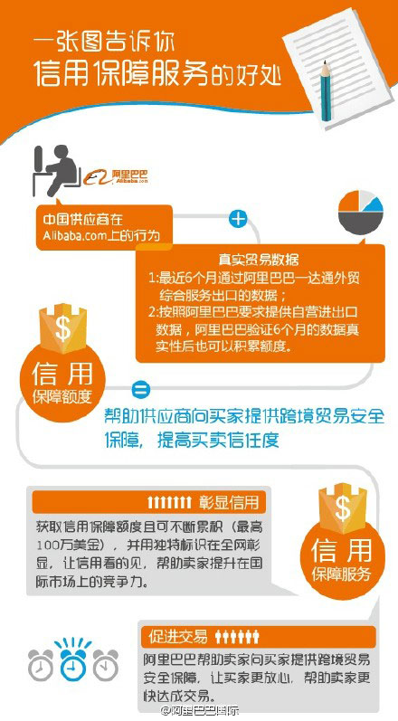 阿里巴巴國際站(Alibaba.com)日前悄然啟動了“信用保障體系(Trade Assurance簡稱:TA)”,根據(jù)每家中小企業(yè)在國際站上的基本信息和貿(mào)易交易額等其他信息綜合評定并給予一定的信用保障額度,幫助他們向買家提供跨境貿(mào)易安全保障。除了展示信用保障額度的金盾外,交易完成后買家的評價也可以像淘寶、天貓一樣展示在網(wǎng)站上,成為企業(yè)信用和實力的證明。